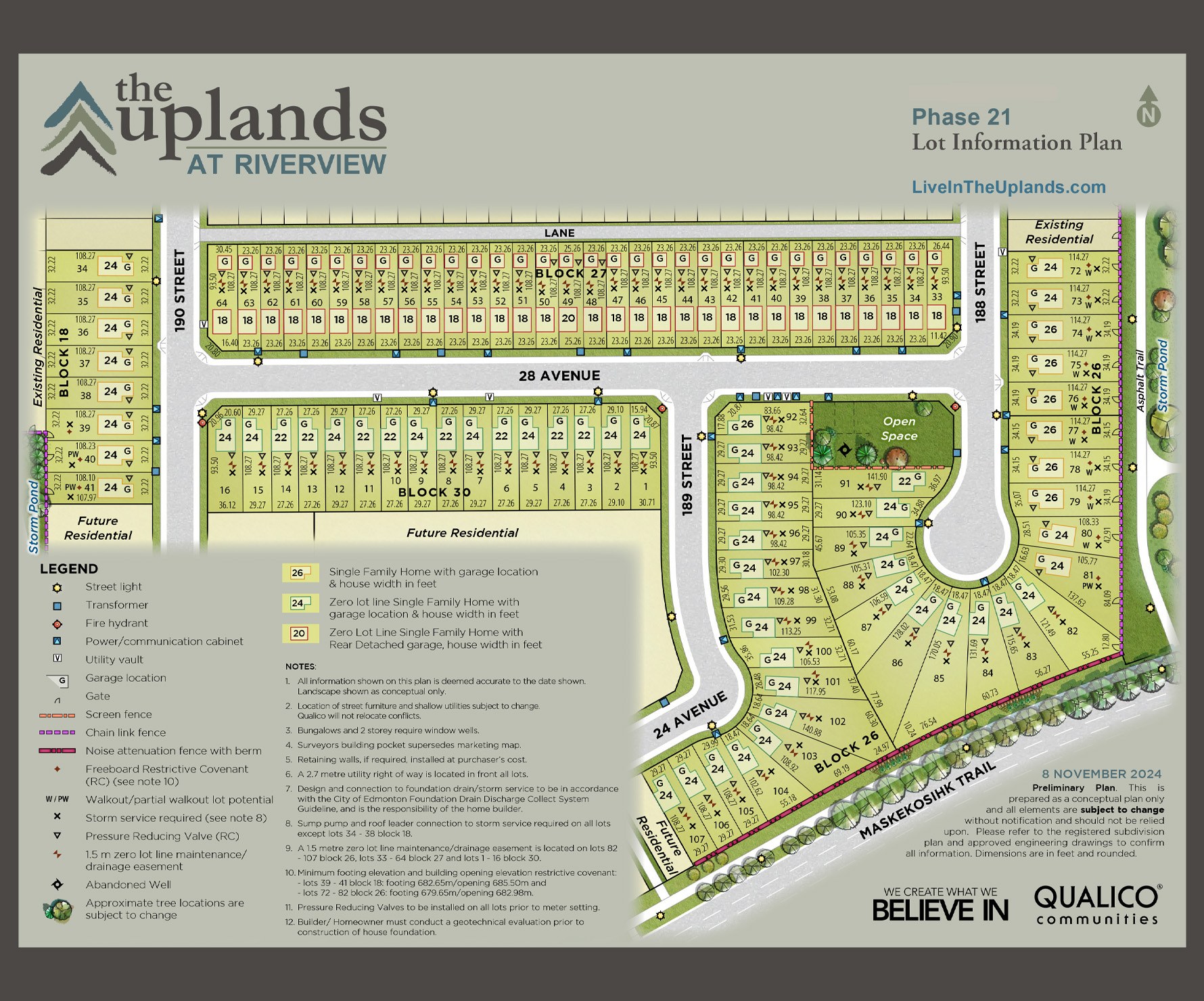 In The Uplands, natural elements such as parks, playgrounds and walking trails are seamlessly integrated, and amenities such as schools, recreation facilities, and shopping are nearby. The community offers a quiet, secluded setting in West Edmonton that also allows access to major driving routes when needed.